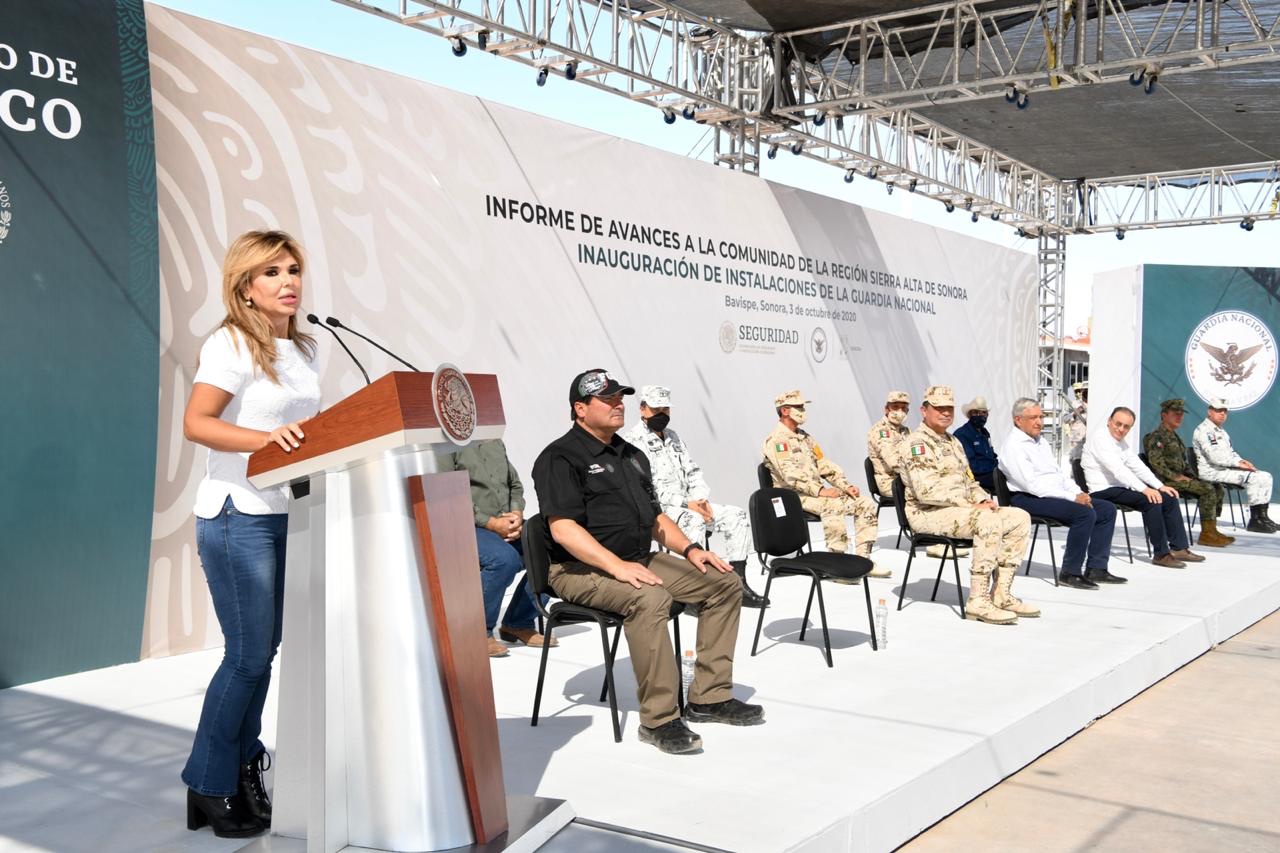 Para fortalecer la estrategia de seguridad en la sierra alta de Sonora, la gobernadora Claudia Pavlovich Arellano acompañó al presidente Andrés Manuel López Obrador, en la inauguración del nuevo Cuartel de la Guardia Nacional en Bavispe.
