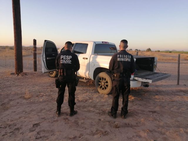 A través de los patrullajes de vigilancia efectuados este viernes 9 de octubre sobre la carretera conocida como Y Griega – Puerto Peñasco kilómetro 13+400, elementos de las citadas corporaciones aseguraron el vehículo Toyota, línea Tundra, de color blanco, que se encontraba abandonado.