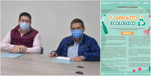 Varias dependencias del Ayuntamiento de Hermosillo convocan al concurso “Tu Arbolito Ecológico”, en el que se invita a niños, niñas, jóvenes y familias a construir un ornato de material reciclable y con ello fomentar la creatividad, el manejo responsable de residuos y el espíritu navideño.