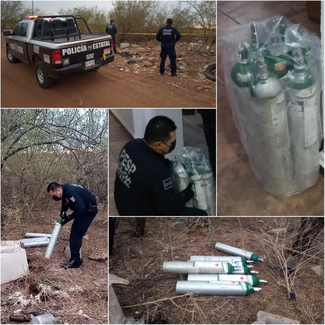 Gracias a una llamada anónima a la línea 089 en la que una persona denunció haber visto a unas personas arrojar unos objetos en el tramo carretero Navojoa-Obregón agentes de la Policía Estatal localizaron la tarde de este miércoles 20 de enero los 7 cilindros robados en el Instituto Mexicano del Seguro Social (IMSS) de Navojoa.