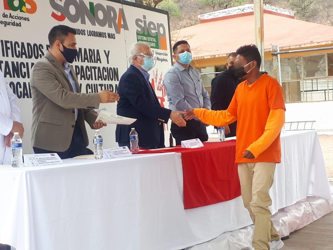 Personas Privadas de su Libertad del Centro de Reinserción Social de Nogales, tras culminar estudios de nivel primaria y secundaria, así como cursos de capacitación para el trabajo, recibieron documentos oficiales que las acredita por parte del Instituto Sonorense de Educación para los Adultos (ISEA) y del Centro de Capacitación para el Trabajo Industrial (Cecati), indicó Javier de Jesús Ibarra Falomir.