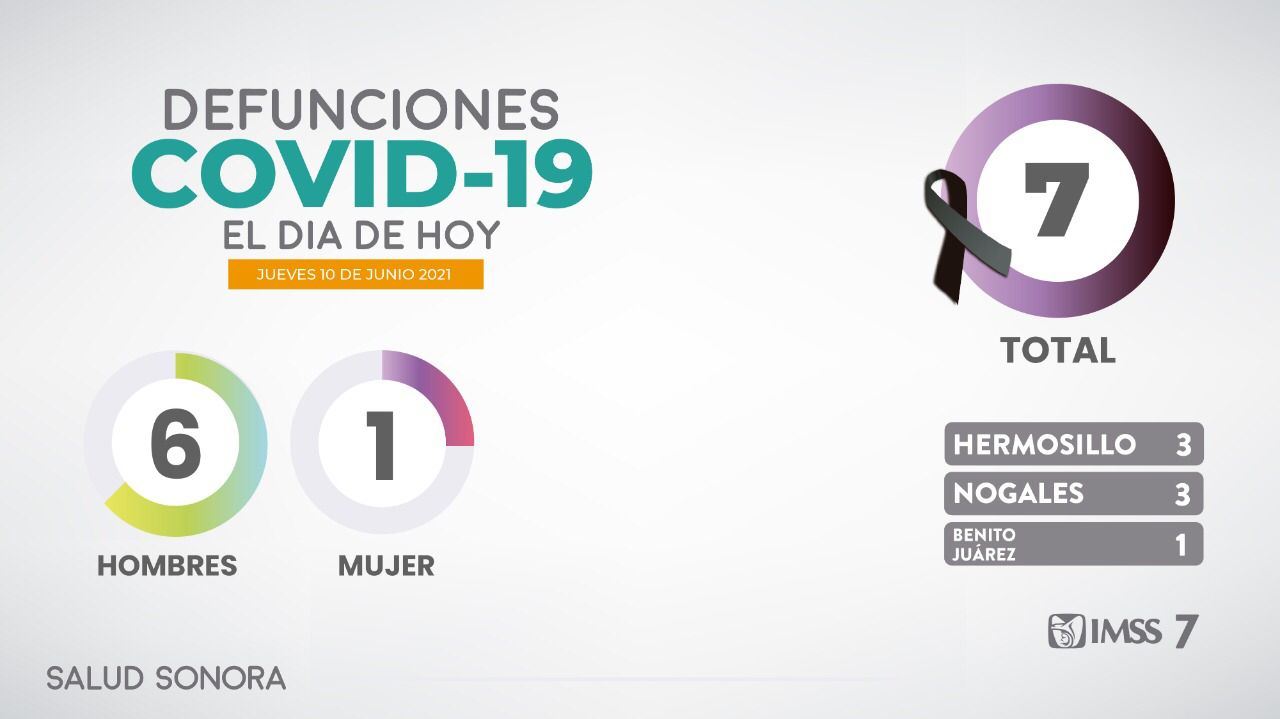 En cuanto a los datos estadísticos de este jueves, 68 mil 377 personas se han recuperado en Sonora; se confirmaron siete decesos en seis hombres y una mujer residentes de Hermosillo y Nogales tres cada uno; Benito Juárez uno; derechohabientes del IMSS siete; con los que suman 6 mil 414 defunciones.