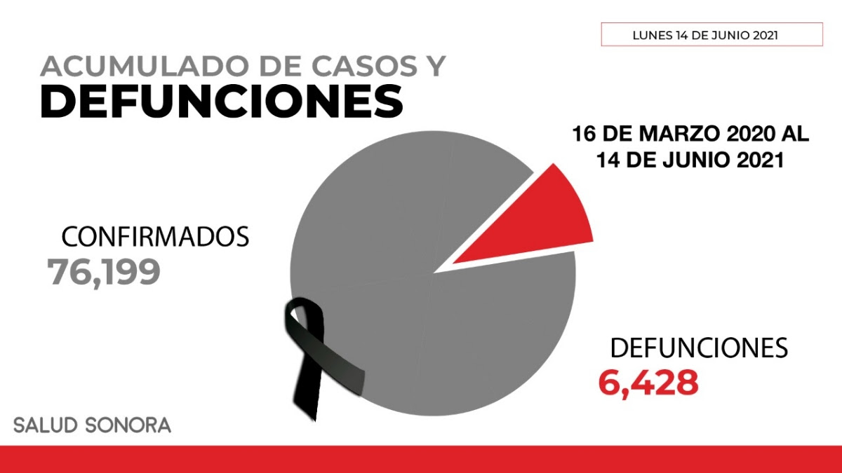 Casos COVID-19 en Sonora 76,199 casos confirmados y 6,428 defunciones