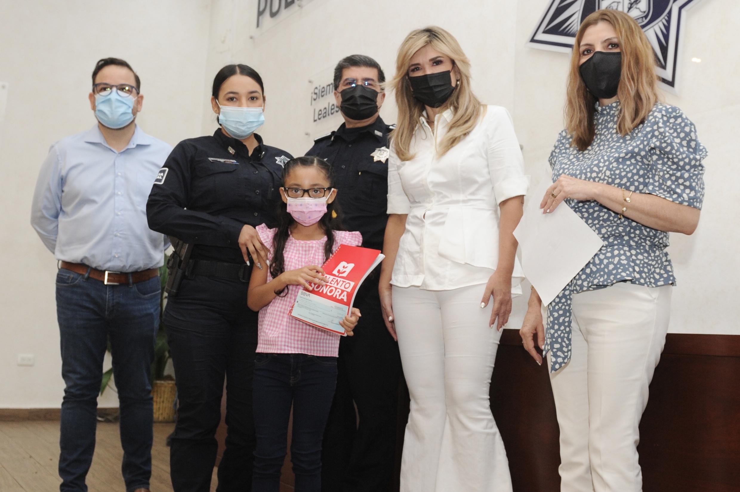 En apoyo de las hijas e hijos de Policías Estatales activos, que son estudiantes de primaria y secundaria, la gobernadora Claudia Pavlovich Arellano entregó becas y estímulo económico por el ciclo escolar 2020-2021.