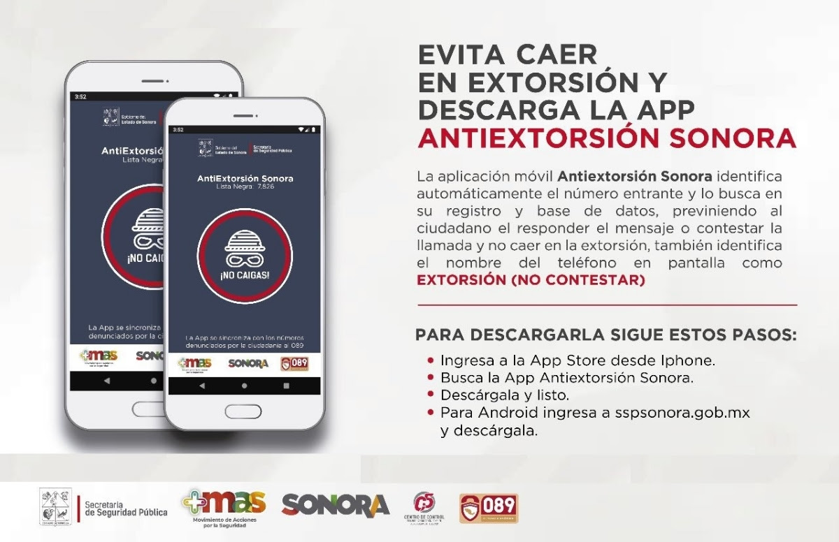 A las y los ciudadanos responsables que coadyuvan en la construcción de seguridad en la entidad, recomendó hacer denuncias anónimas de forma segura en la App 089 Sonora o en el portal http://089.sspsonora.gob.mx. Ahí especificó pueden denunciar personas sospechosas, lugar de venta de drogas, delitos cibernéticos, maltrato, extorsión, secuestro y posesión de arma, entre otros.