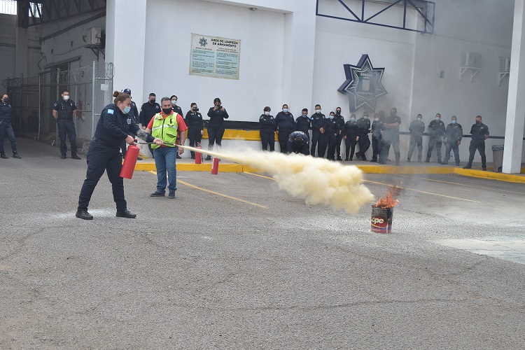 La capacitación estuvo a cargo del. Lic. Jesús Heberto Madrid Durán y el Ing. Iram Valencia Maldonado de Protección Civil, quien explicó que este tipo de entrenamientos fortalece el actuar de los policías para detectar riesgo en los ambientes donde intervengan, identificar posibles rutas de evacuación, atender a los ciudadanos en algún accidente o problema de salud hasta coordinar acciones con las diferentes corporaciones como en disturbios, desastres naturales o de cualquier emergencia.