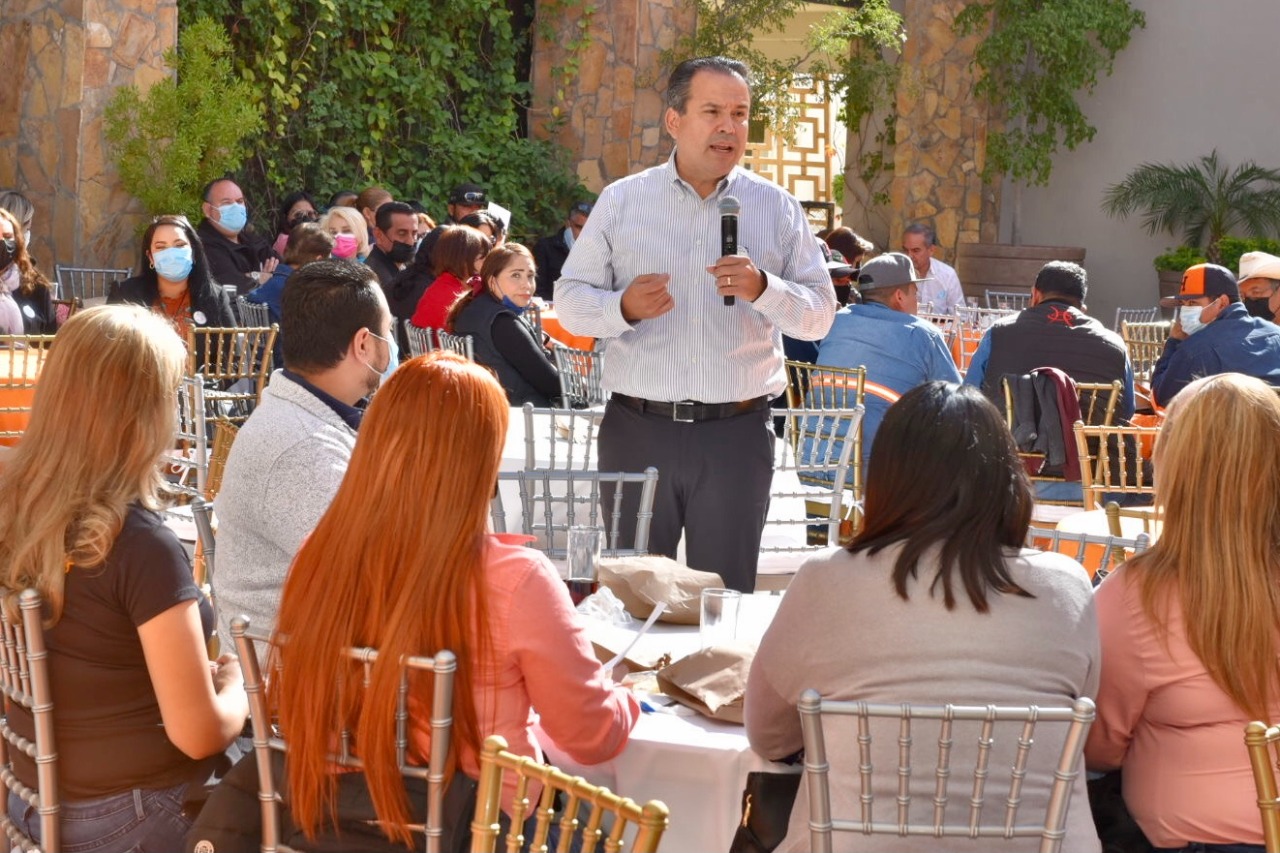 “Un buen ambiente de trabajo parte de reconocer el esfuerzo que ustedes hacen a diario, y de que podamos entre todos generar un sentimiento de hermandad, compromiso, camaradería y esfuerzo colectivo”, afirmó el Presidente Antonio Astiazarán Gutiérrez a servidores públicos municipales.