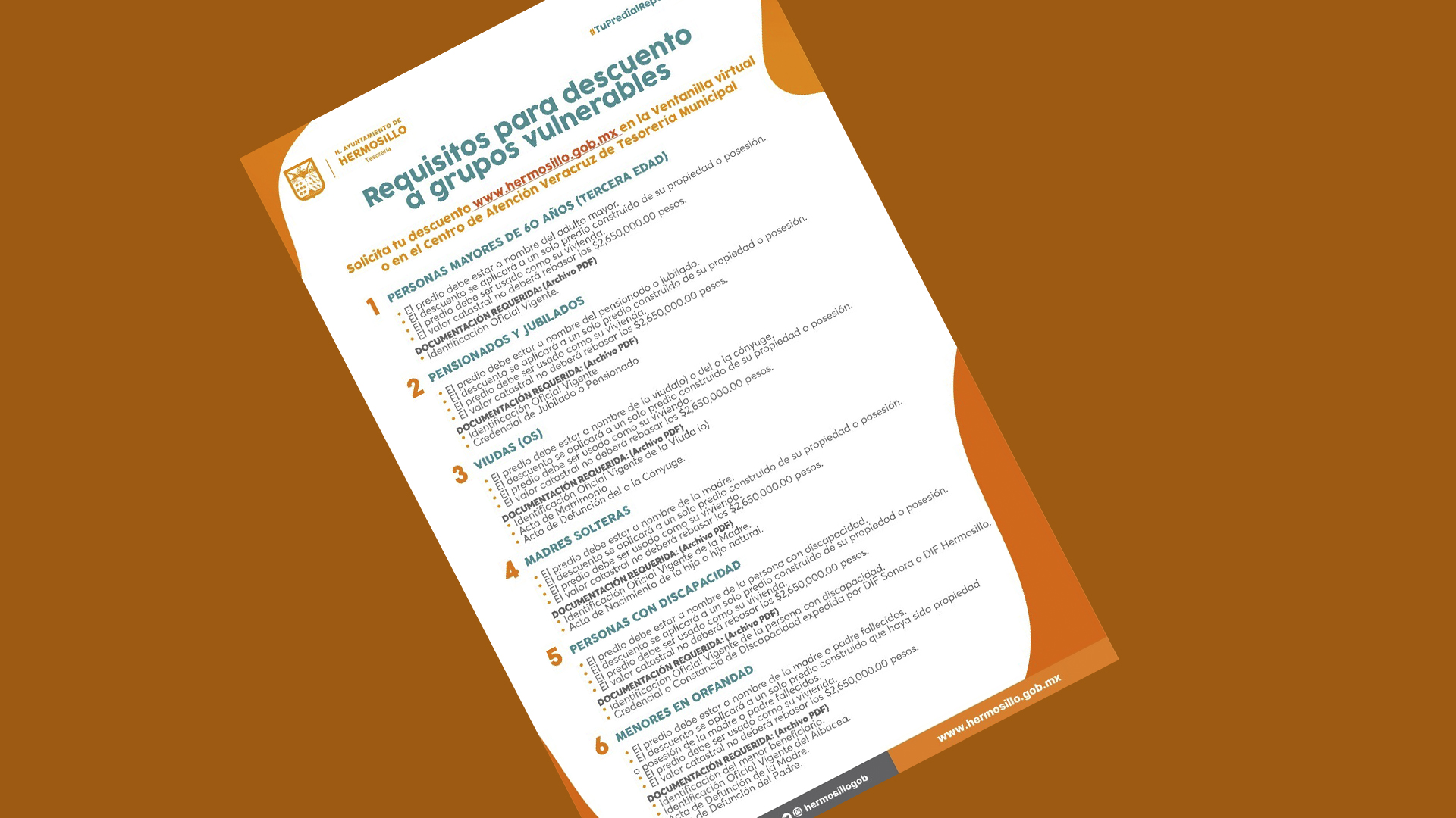 El Ayuntamiento de Hermosillo dio a conocer los pasos para que personas vulnerables reciban descuento del 50% en el pago de predial correspondiente al año 2022, esto a través de una solicitud de descuento en línea, en caso de que no puedan asistir a ventanilla.
